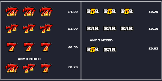 The Blazing Frenzy slot by Bragg features 3 reels, 9 paylines, and accommodates bets ranging from £0.05 to £4.50. This classic-style slot offers straightforward gameplay with a simple reel layout, designed for a traditional slot machine experience.