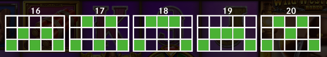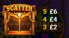 When the RODEO’S WIN MULTIPLIER is triggered, the initial win will be multiplied by either x2, x4, x6, x8, x12, x16, x20, x24, x28 or x32. The multiplier will be applied progressively in the order shown.