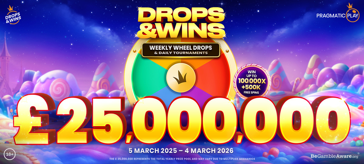 Between 19th November 2025 and 4th March, Pragmatic’s £25,000,000 Drops & Wins returns with more than 50,000 weekly prizes available!