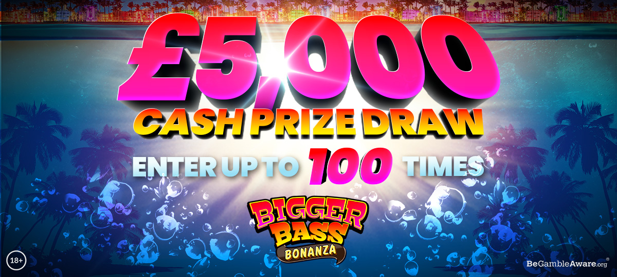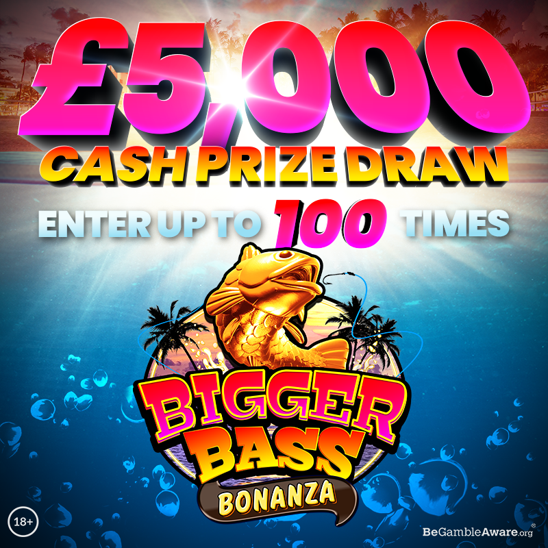 To qualify for one entry, simply opt in, deposit £10 and wager it on any online slots. Increase your chances of winning by entering the prize draw up to 100 times throughout the promotion. Plus, players who earn one entry or more will receive 10 FREE SPINS on Bigger Bass Bonanza.
