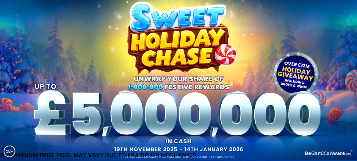 The Sweet Holiday Chase Weekly Prize Drops run weekly from 19th November 2025 at 19:01 CET until 14th January 2026 at 18:59 CET (the “Promotional Term”). This is a network promotion operated by Pragmatic Play and prize pools are shared across different operators.