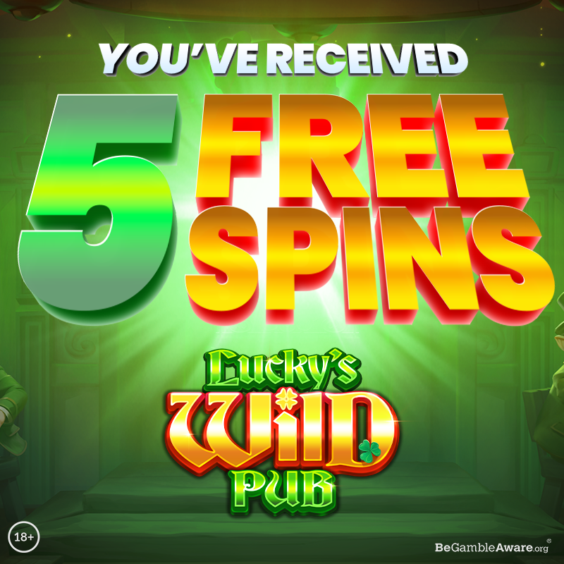 Contacted players only. 23rd January – 30th January 2026 only. No deposit required. Max 5 Free Spins. Spins valid on Lucky’s Wild Pub. Spin value is 10p. T&Cs Apply. 18+