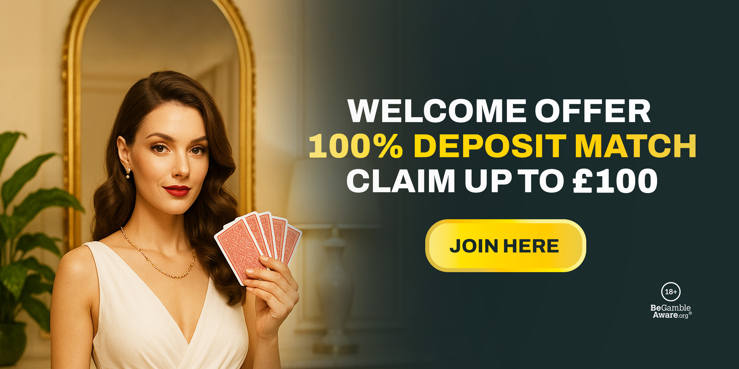 New Depositing players only. 100% Deposit Match Welcome package. Claim up to £100 on your first deposit.
